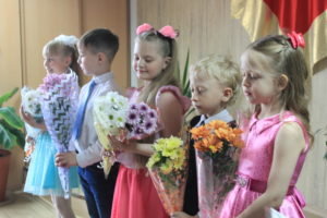 В этот праздничный день все ученики школы удостоились Святого Причастия, а потом в нашем хоровом зале собрались родители и прихожане, ученики младшей группы и «виновники» торжества.
